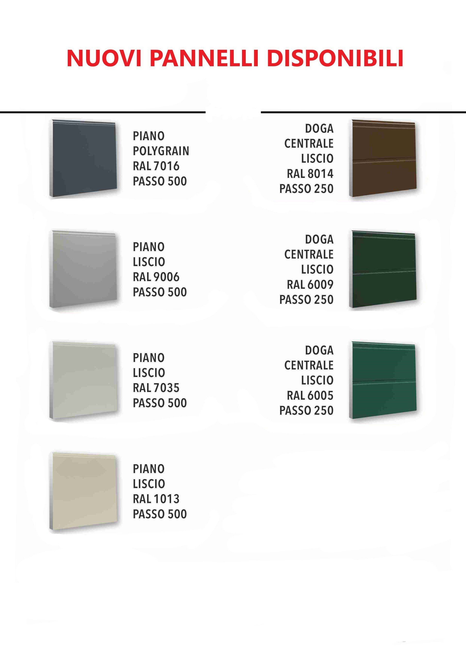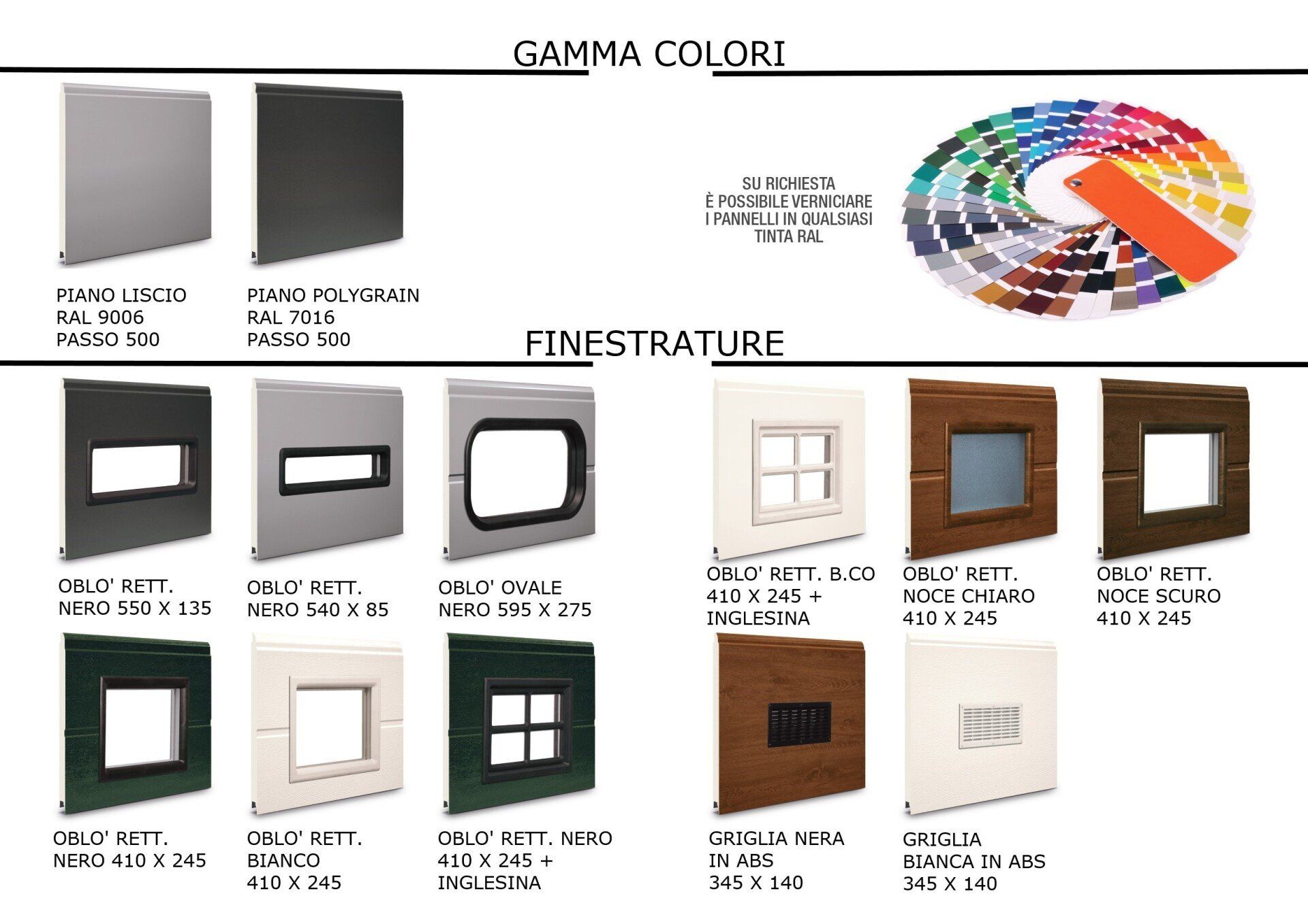 Dotati di snodo anti pizzicamento dita hanno le testate protette da cassette laterali in lamiera preverniciata bianca. Il pannello di base e il superiore sono provvisti di profilo in alluminio nero e guarnizione di tenuta in EPDM.